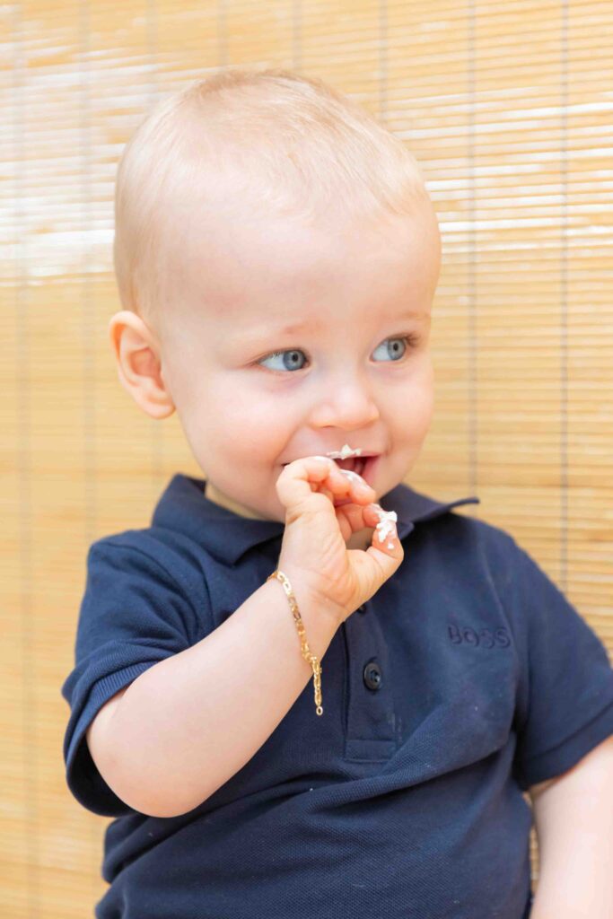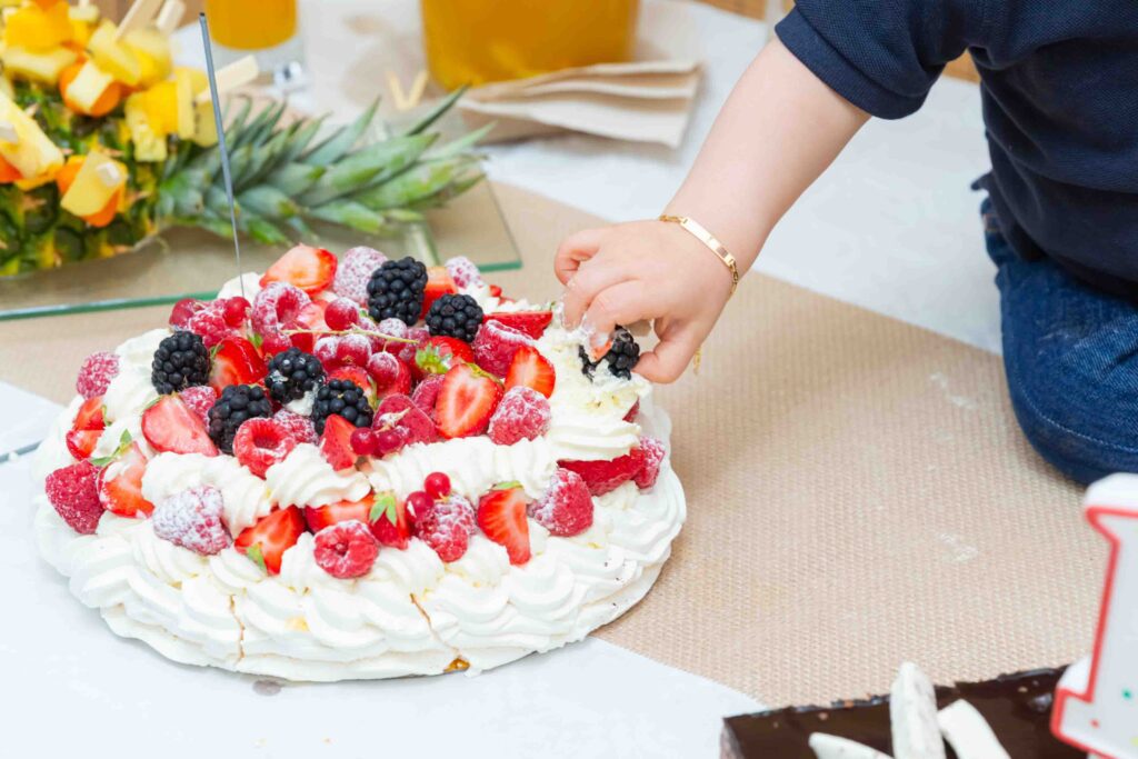 Evidemment il sera tellement content qu’il en mettra partout ! Mais c’est justement çà qui est drôle et il n’y a pas plus naturel qu’un enfant, son sourire, ses cris des joies, ses applaudissements à lui même et ses petits doigts dans la bouche. Et à la fin, les adultes finissent le gâteau bien sûr.