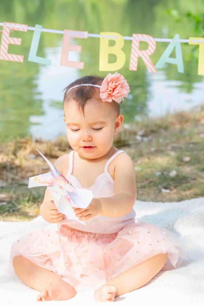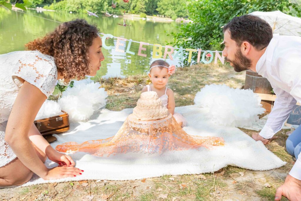 Idéalement en extérieur dans votre jardin ou dans un parc, mais aussi chez vous, fêtons ensemble le premier anniversaire de votre enfant et immortalisons en photo son tout premier gâteau et sa première bougie.